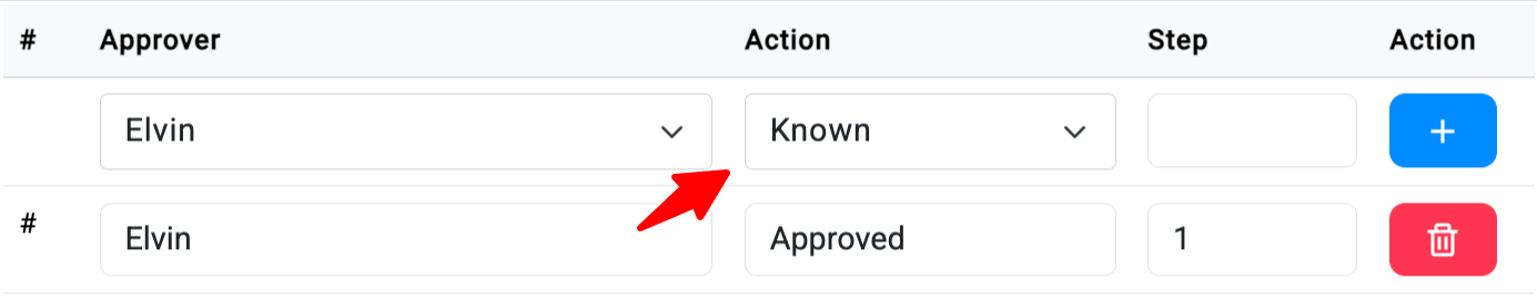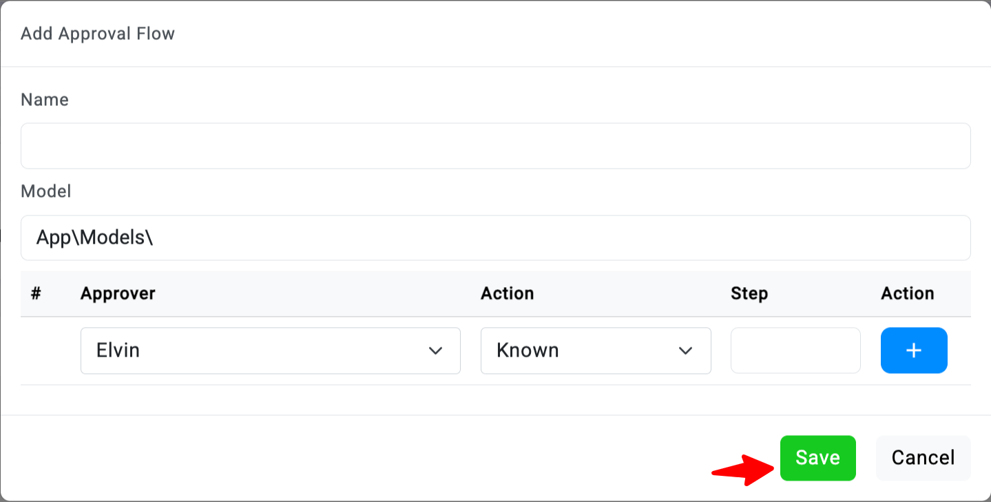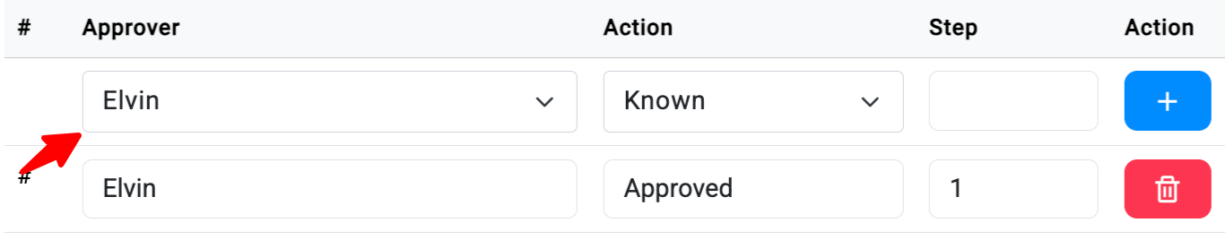 Untuk menambah langkah baru dalam Approval Flow, klik tombol + yang terletak di formulir.