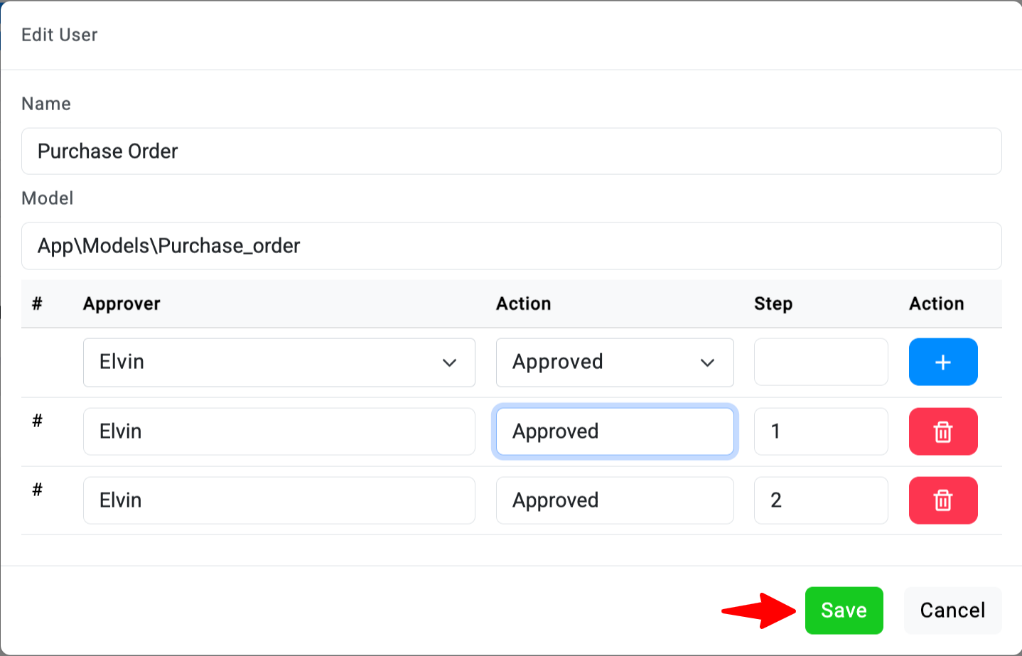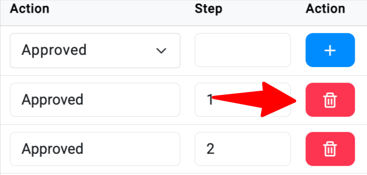 - Untuk menghapus langkah dalam Approval Flow, klik tombol Trash yang terletak di formulir.