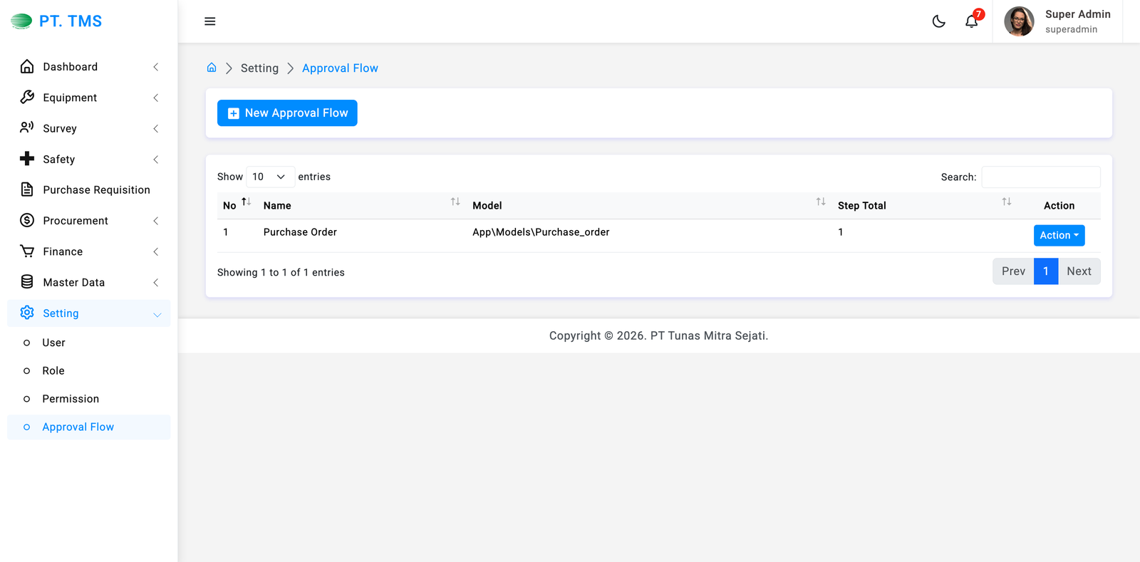 Klik Tombol "New Approval Flow" di bagian atas halaman. Tombol ini akan membuka formulir untuk menambahkan Approval Flow baru ke dalam sistem.