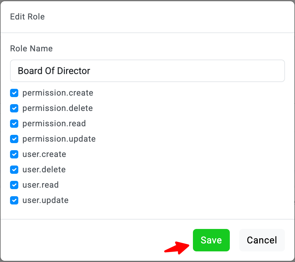 Simpan setelah mengisi informasi yang diperlukan untuk menambahkan Role baru ke dalam daftar.